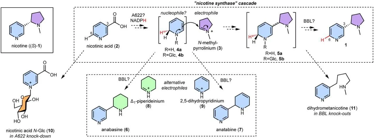 Nicotine biosynthesis completed by cryptic activating glucosylation