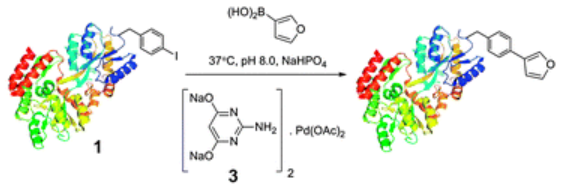 Palladium mediated site selective Suzuki-Miyaura protein modification at genetically encoded aryl halides